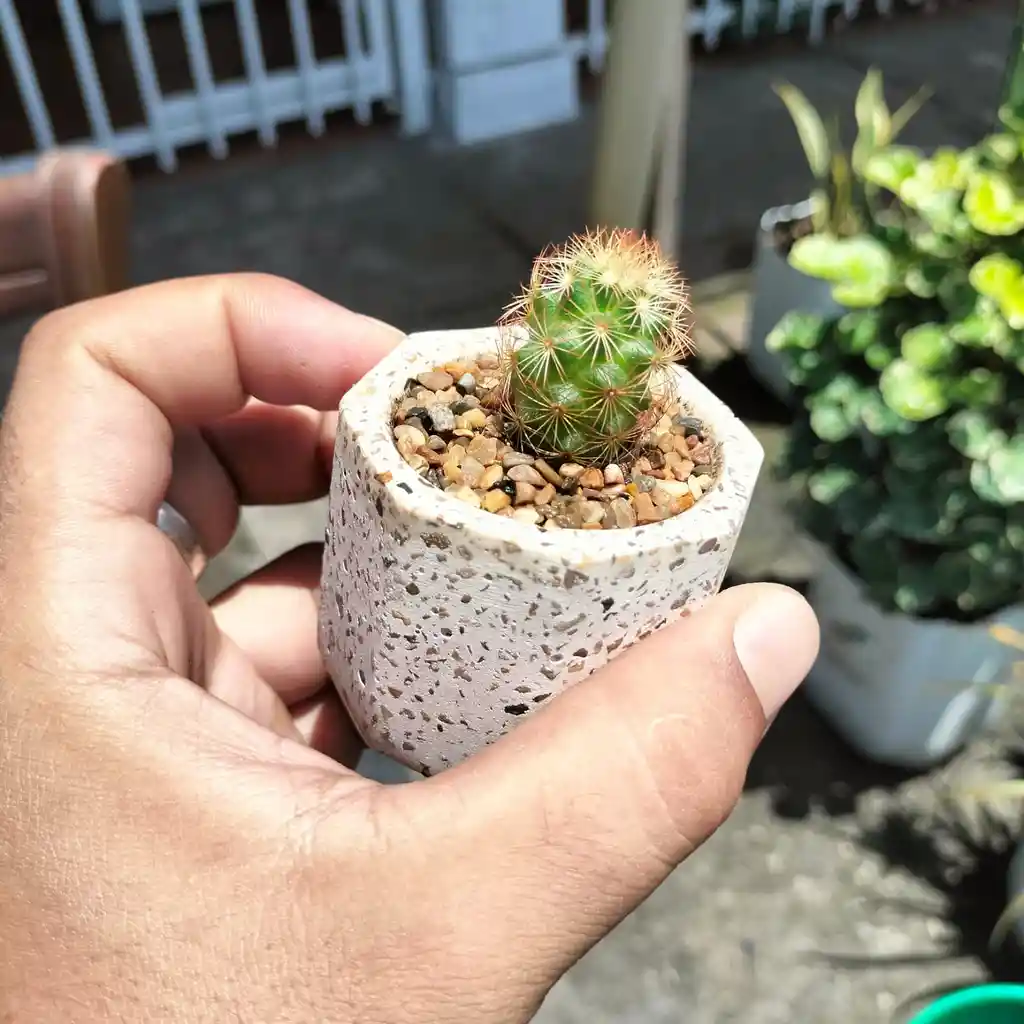 Cactus bebe y maceta de cemento blanco tipo recordatorio