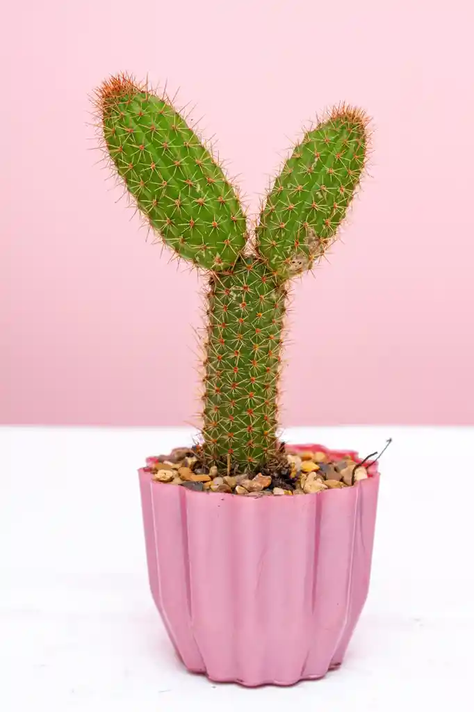 Presentamos este encantador cactus. Su cuerpo cilíndrico de un verde vibrante está cubierto de pequeñas espinas que le dan un toque rústico y natural. Esta pieza se complementa a la perfección con una moderna matera de plástico de tono rosa chicle con un diseño de pliegues, que añade un aire fresco y juvenil al conjunto. Es un regalo adorable y lleno de personalidad que aporta un toque desértico con estilo. Los cuidados específicos de este cactus se entregarán detallados en la ficha técnica adjunta con su compra.