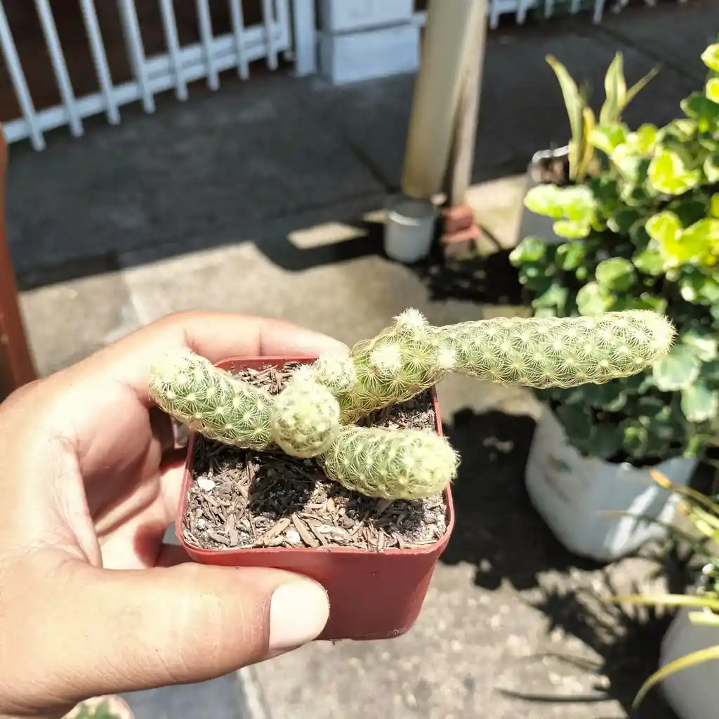 Tipo de planta: Es un cactus pequeño de crecimiento apiñado que forma colonias de tallos cilíndricos. Características: Está cubierto de espinas inofensivas pero afiladas, que pueden ser doradas o amarronadas. Floración: Produce pequeñas flores blancas o amarillas durante la primavera y el verano.