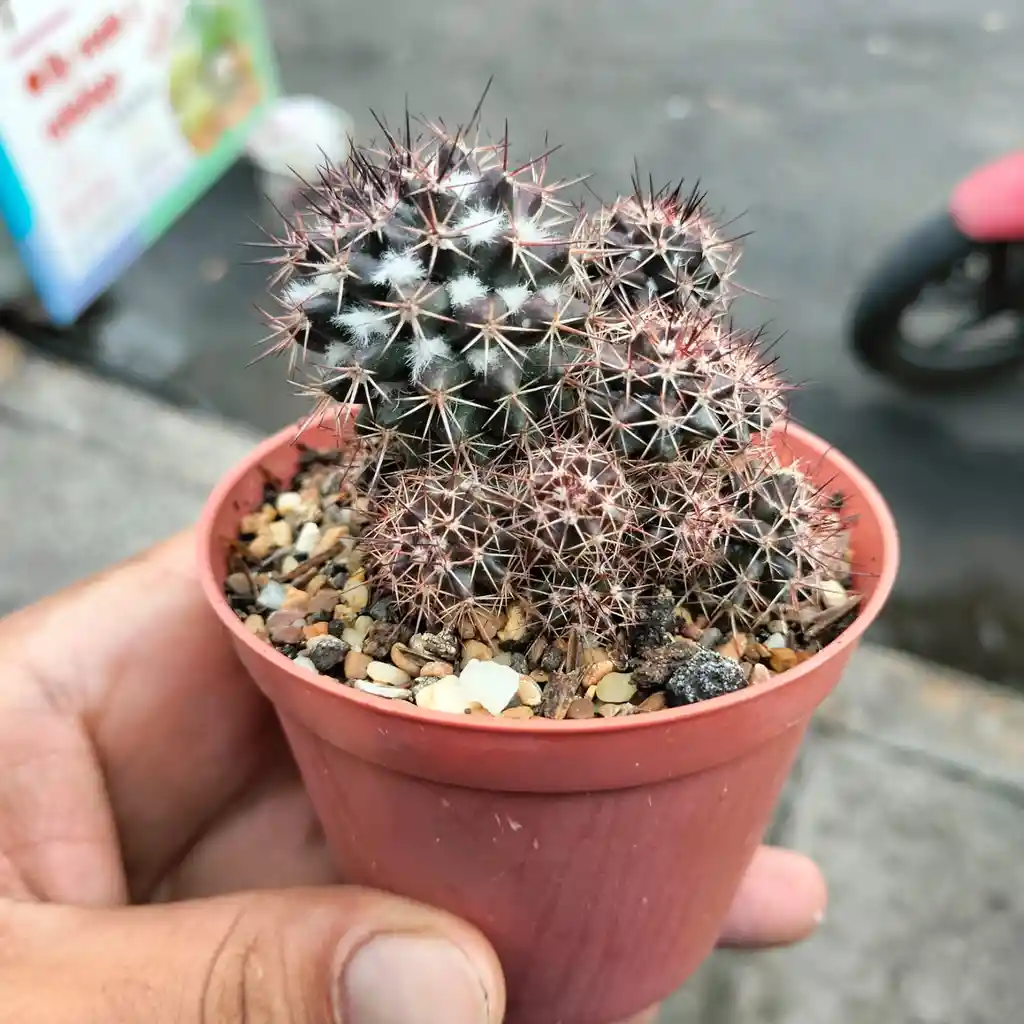 Cactus Mammillaria voburnensis p7 Origen y Hábitat: Es nativa de regiones de poca altitud (50-500 msnm) de Guatemala y México, específicamente en los estados de Chiapas y Oaxaca. Apariencia: Su superficie está cubierta de tubérculos con espinas. Presenta espinas radiales de color marfil con puntas oscuras y espinas centrales rectas y fuertes, de color marrón al principio. Floración: Produce pequeñas flores, que varían en color desde blanco amarillento con líneas marrones-rojizas, y a menudo forman un anillo alrededor de la parte superior del cactus. Ubicación y Luz: Se recomienda cultivarla en ambientes muy iluminados o a pleno sol, aunque se debe proteger del sol del mediodía en verano para evitar quemaduras.