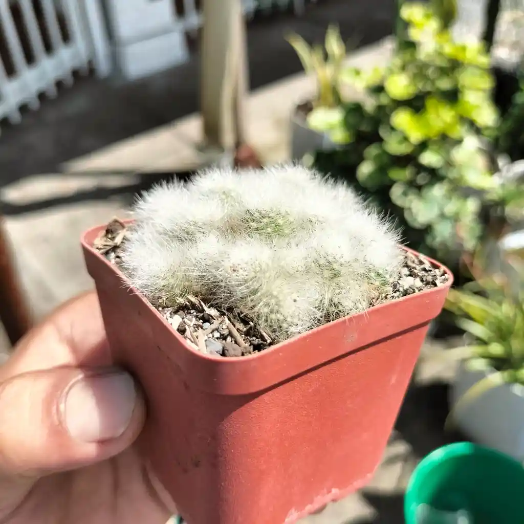 La Rebutia albiflora (o Aylostera albiflora) es un pequeño cactus boliviano de forma globular que agrupa cuerpos verde brillante de unos 2-2,5 cm, conocidos por sus delicadas flores blancas con franjas rosadas en primavera. Prefiere luz brillante indirecta, riego moderado tras secar el sustrato y tolera temperaturas frescas.