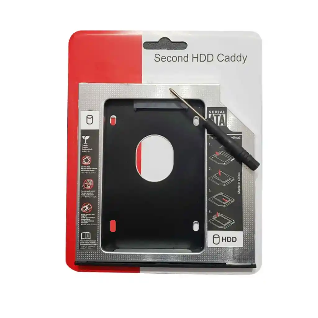 Bienvenidos Somos SmartCenter Tecnopaper - Caddy adaptador para discos duros 12.7 mm - Permite agregar un nuevo disco duro a su portátil por la unidad de DVD - Conexión plug play - No necesitas cables ni adaptadores - Soporte discos duros 2.5 SATA I/II/III HDD-SDD - Funciona con todos los portátiles que tengan unidad DVD - Contiene sus herramientas para la instalación - Algunos Adaptadores no incluyen la tapa externa de la unidad, ya que se le pone la de su unidad de DVD al cambiarla