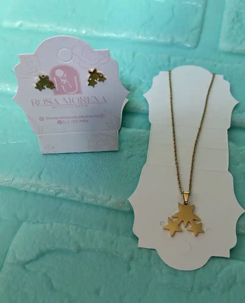 CADENA ACERO DORADA ESTRELLAS + TOPOS