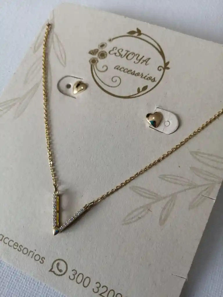 C10 Hermosa cadena dorada incluye aretes de corazón para dama