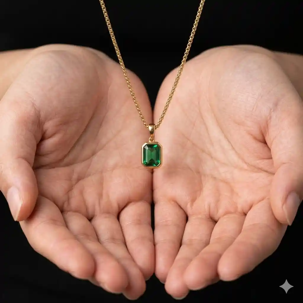 cadena bohemio vintage - Acero inoxidable dorado con piedra sintética cuadrada verde, elegante y versátil