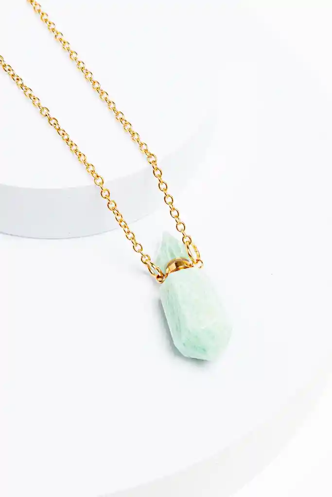 Collar con cadena en acero inoxidable, baño dorado y dije en forma de botella hecha en cuarzo natural. En la mayoría de las culturas la joyas en el cuello fueron empleadas como símbolos de pertenencia a un grupo, para protegerse del mal o para representar símbolos de importancia o creencias; estos collares son creados para convertirse en amuletos que te harán recordar tu propósito , para que los lleves con cariño y en el deposites tus esencias preferidas o aceites esenciales para tu trabajo espiritual y asi estos collares adquieran un valor que trasciende lo estético ya que el uso de los aceites esenciales es tan antiguo como la civilización misma; se han utilizado para elevar el espíritu y ayudar en la cura de enfermedades físicas y búsquedas espirituales. Ya sea para elevar tu vibración o simplemente tener un aroma que te recuerde tu propósito, este collar puede ayudarte en tu propósito. MATERIAL: Dije de cuarzo, cadena y dije en acero inoxidable. MEDIDAS: 70 cms largo