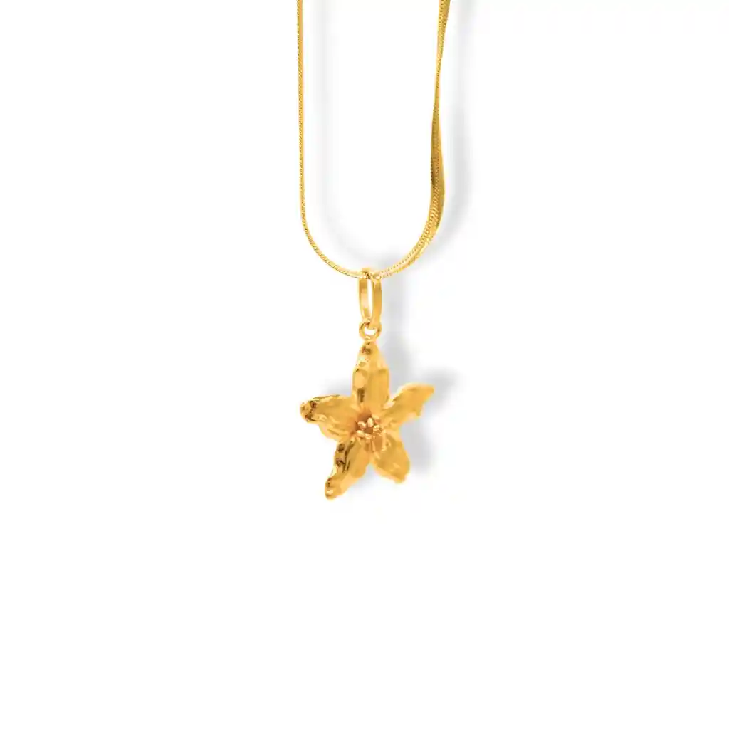 La cadena con una sola flor de jazmín como accesorio sería una elección elegante y atemporal. Este accesorio sería versátil y adecuado para diversas ocasiones, desde un look casual hasta uno más elegante y sofisticado.