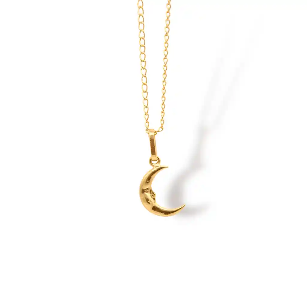 Es una joya única que atrae las miradas de quien lo lleva. La cara de bronce y oro de 24 kilates brilla para dar un cálido resplandor a quien lo lleva, mientras que la fina cadena da un toque moderno al delicado diseño.