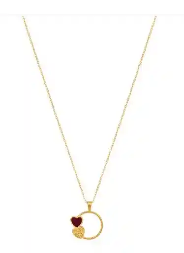 Cadena elaborada a mano en bronce con baño en oro y dije esmaltado rojo. Dimensión: Largo Cadena 43.5 cms – Diámetro Dije 2 cms Tiempo de Entrega: 3 a 7 días hábiles. Se recomienda: No aplicar cremas, perfumes, cosméticos y agua. Mantenerlos libres de humedad. Limpiar con un paño suave para mantener el brillo original. Garantía de 90 días a partir de la fecha de compra.
