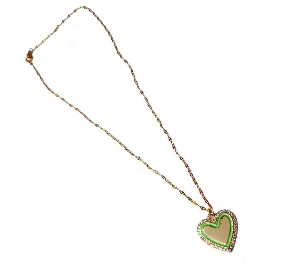 Presentación: Cierre Ajustable Material: Acero Quirúrgico Color: Dorada Diseño: Corazón Verde Producto Hipoalergénico. Tamaño 60 cm Caracteristicas: Es un material que no se oxida, no se oscurece con el tiempo, su tonalidad y brillo no se alteran. Es Antialérgico, la cantidad de níquel que tiene es residual por lo que en rarisimas ocasiones causa alergias. No necesita mantenimiento. Es un material duro, 1000 veces más duro que el platino y no se deforma.
