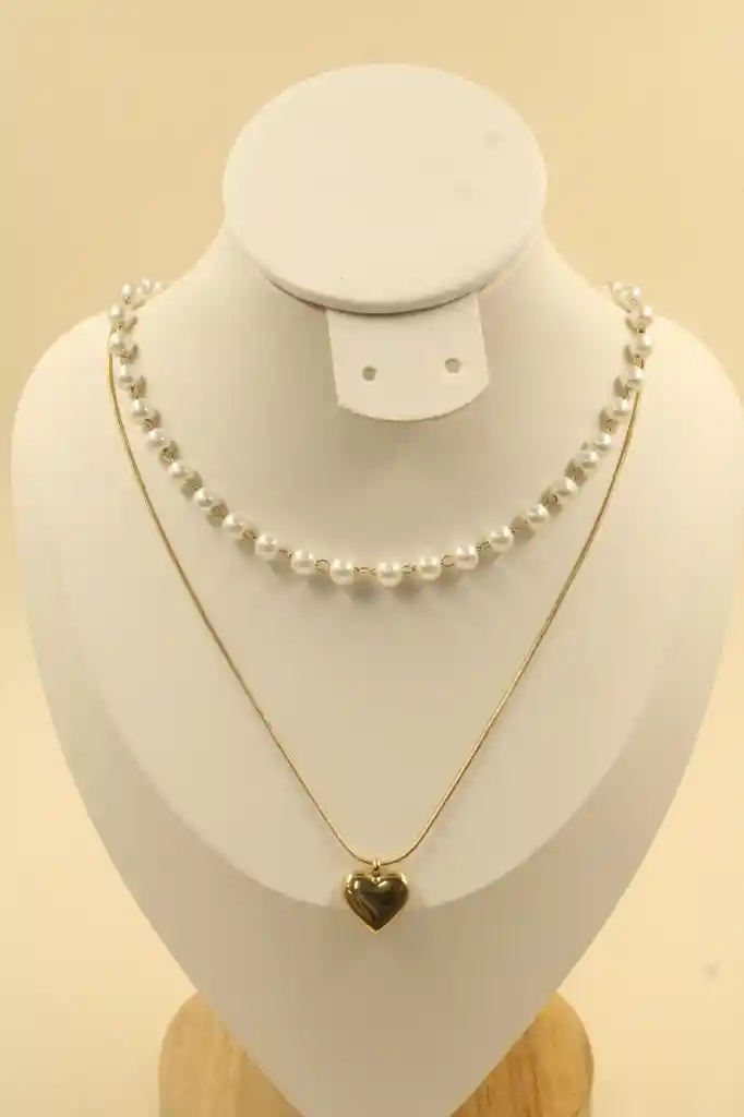 Doble cadena en acero inoxidable con perlas y dije de corazón, delicada y elegante para elevar cualquier look ✨