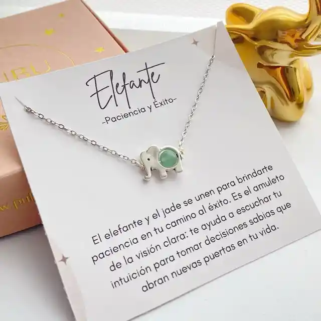 CE1-2 🐘 Collar Elefante "Paciencia y Éxito" - Acero Inoxidable Abre las puertas a nuevas oportunidades con sabiduría y claridad. Este amuleto combina la fuerza del elefante con la energía del jade, diseñado para guiarte hacia tus metas con una visión despejada. Beneficios de tu Amuleto: Elefante y Jade: Una unión poderosa que te brinda paciencia en el camino y te ayuda a alcanzar el éxito. Intuición: Actúa como un recordatorio para escuchar tu voz interior y tomar decisiones sabias que transformen tu vida. Detalles del Producto: Material Premium: Cadena y dije fabricados en acero inoxidable de alta calidad (no se mancha, es hipoalergénico y muy resistente). Piedra Natural: Detalle central con auténtico Jade, la piedra de la prosperidad. Presentación: Se entrega con su tarjeta de significado "Paciencia y Éxito" y empaque de la marca. Ideal para: Estudiantes, emprendedores o cualquier persona iniciando un proyecto importante.