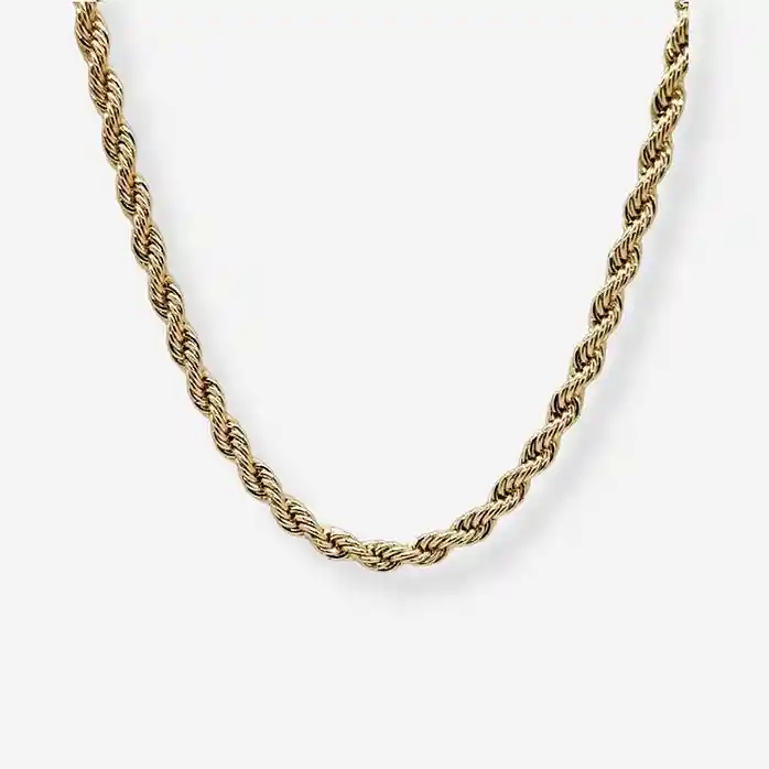 Añade un toque sofisticado a tu look con la Cadena Lazo 5mm. Su diseño trenzado y textura de lazo le dan un brillo especial que eleva cualquier outfit. Fabricado en bronce con baño de rodio y oro de 18K, es una pieza resistente, hipoalergénica y perfecta para el día a día. • Material: Bronce con baño de rodio y oro de 18K. • Hipoalergénico: Ideal para pieles sensibles. • Cadena ajustable: Se gradúa de 46.5 cm a 52 cm. • Grosor de 5 mm: Un diseño llamativo pero elegante. • Resistente y duradero: No se pone negro con el tiempo. Un básico versátil que puedes combinar con otros collares o llevar solo para un look minimalista y chic. Un accesorio encantador para quienes aman los detalles únicos y diferentes.