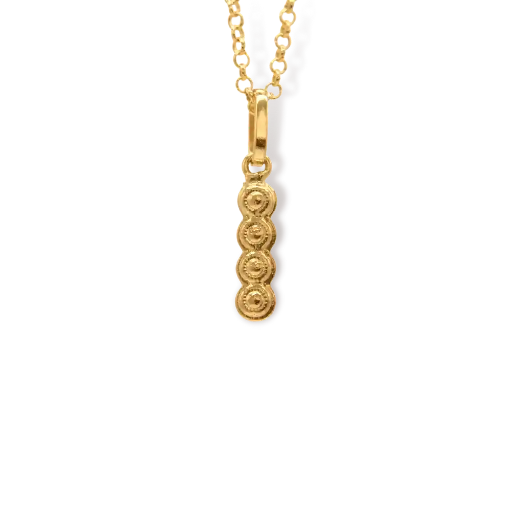 Esta cadena es perfecta como regalo para un ser querido, un amigo o un conocido. Fabricada en bronce con baño de oro de 24 kilates, presenta un acabado texturizado y viene con una delicada cadena de 45 cm de longitud.
