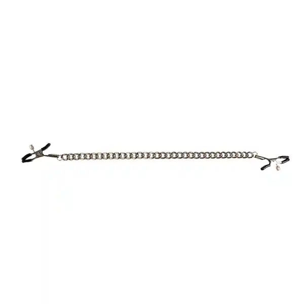 Cadena Con Pinzas Para Los Pezones. Características: Material: Metal Color: Gris y Negro Peso: 188 g Ancho Máximo de la Esposa: 10 cm Largo Total: 15 cm Diámetro: 6 cm Cuidado y Limpieza: Jabón Suave o Limpiador de Juguetes. Confidencialidad: Tus Pedidos se Envían en Una Caja o Sobre Totalmente Sellado y Opaco Sin Ningún Tipo de Marcas Externas. Para Nosotros es Muy Importante tu Privacidad.