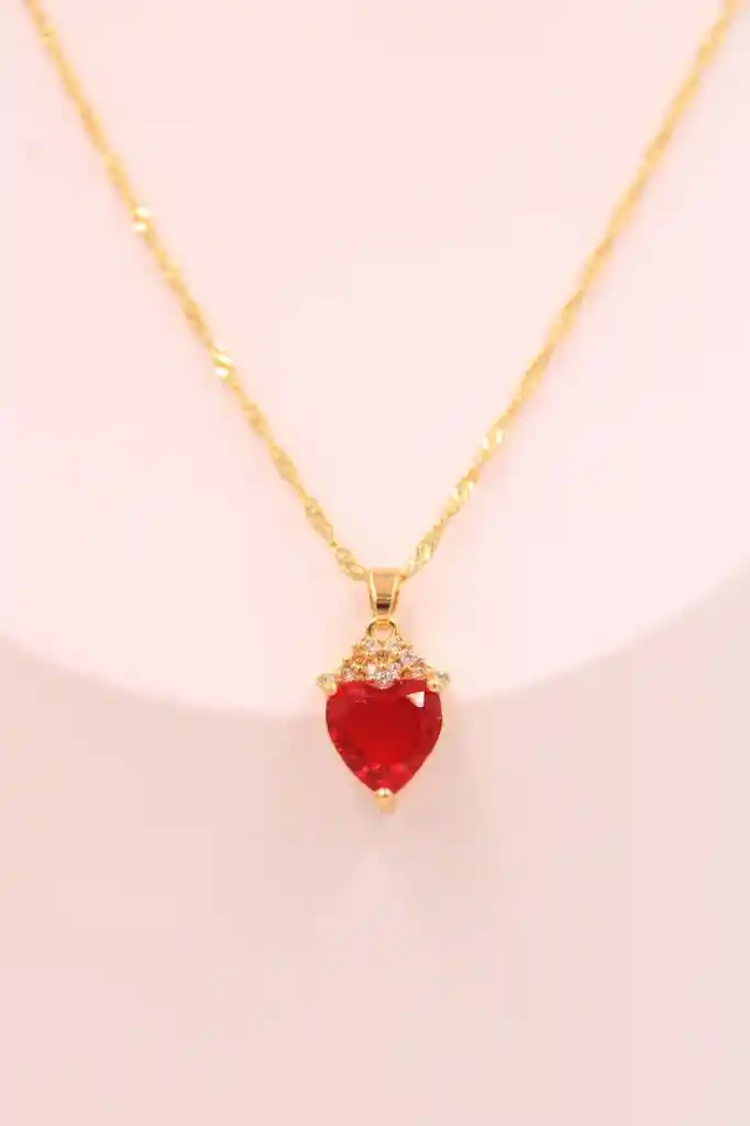 Delicado collar con dije en forma de corazón rojo brillante, acompañado de finos detalles que aportan un toque de elegancia y romanticismo. Su acabado dorado lo hace perfecto para lucir en cualquier ocasión o como un regalo especial lleno de estilo. "Garantías Condiciones de GARANTÍAS. Importante tener presente que no aplica garantía por Color o Modelo ya que se envía según disponibilidad y este producto no cuenta con variables. No aplica Garantía por modelo o color en los productos que no cuentan con variable, se envían según disponibilidad, de igual manera no aplica garantía por intensidad de colores publicados en la imagen. No aplica garantía sobre garantía. * OJO en el caso de ser aprobada una garantía no se enviará el cambio hasta no recibir el producto sobre el cual se está aprobando la garantía, una vez recibido en un término de 24 a 48 horas se hace despacho del cambio* Condiciones para montar una Garantía en la plataforma. Toda garantía para ser procesada debe llevar la suficiente información con videos o fotos donde se pueda evidenciar el daño o mal funcionamiento de las mismas. Y debe llevar la guía de entrega con la que llego. (la guía hace las veces de facturación para la reclamación de la orden) Condiciones para la devolución de un producto. * Para hacer efectiva la devolución, el producto debe entregarse debidamente protegido cuidando el estado del empaque original, incluir todos los documentos y/o manuales y accesorios (si aplica). Además, el estado de la guía debe encontrarse en ENTREGADO, para así mismo proceder. Garantías por piezas Faltantes * Piezas faltantes o productos rotos, dañados y con abollonaduras: Para realizar un proceso de garantía, cuentas con máximo 2 días para reportarla a partir de la recepción del producto, a través de la plataforma, en la cual se debe especificar y argumentar la novedad con evidencias (fotos y videos del estado de recibido del producto con su empaque y la foto o video de la guía de recibido) Ley de retracto * Ley 1480 de 2011/ Para ejercer el derecho de retracto, el consumidor debe devolver el producto al proveedor en las mismas condiciones en que lo recibió. Los costos de transporte y otros que conlleve la devolución corren por cuenta del consumidor. El término máximo para ejercer el derecho de retracto será de cinco (5) días hábiles, contados a partir de la entrega del producto. Se anulará automáticamente el derecho a retracto si el producto fue usado. o no viene en las mismas condiciones de entrega, con sus accesorios, sellos de seguridad, manuales y lo que conlleve el mismo. Fallas de fábrica * Para realizar el reporte, cuentas con 30 días de garantía por funcionamiento y/o daños del producto que no estén relacionados con el correcto funcionamiento de este, es importante aportar las evidencias (video) donde el producto no este funcionando y se debe reportar mediante la plataforma. En casos de Cambios o devolución de las garantías. * En los casos que se apruebe una garantía por mal funcionamiento o cambio del producto. Se deberá enviar el producto inicial a nuestras bodegas. Una vez el producto llegue contaremos con 48 horas para el envió del producto por cambio o reparación de este.Si encuentras un mejor precio en el mercado, escríbenos y compártenos el link de este para poderlo evaluar. "
