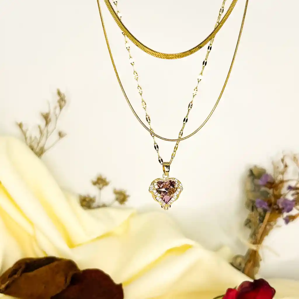 Cadena Set X3 Corazón cristal y doble Serpientes Acero titanio con baño de oro de 18k largo 38 – 45 cm aprox. Recomendaciones y cuidados: Para preservar el color te recomendamos no entrar a piscinas o el mar, tampoco aplicar líquidos y químicos tóxicos(perfumes, splash, cremas, alcohol, etc) Almacena tus joyas en los empaques de tela entregados con tus productos. POETRY no garantiza que el baño de oro y cualquier material de nuestros modelos dure para siempre. Las piezas bañadas y chapadas en oro, acero inoxidable, acero titanio, son por defecto, más frágiles y susceptibles de perder el color con el paso del tiempo. Para mayor información te invitamos a leer el link cuidado de tus Accesorios.