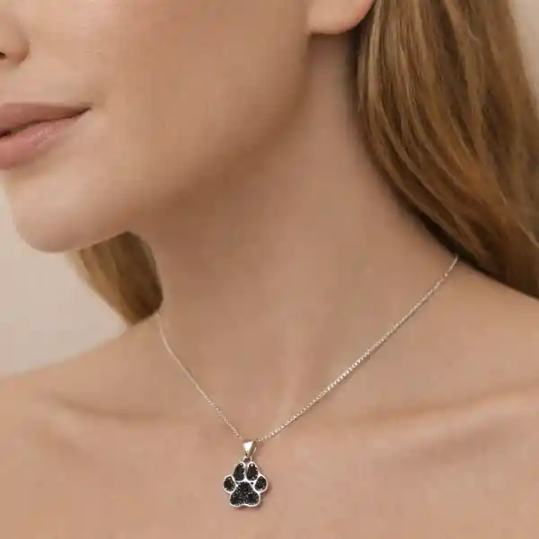 CADENA Y DIJE HUELLA DE PERRO CIRCON NEGRO PLATA 925 La plata en joyería ofrece beneficios estéticos (brillo, diseños versátiles), prácticos (durabilidad, asequibilidad, hipoalergénica) y holísticos (protección energética, equilibrio emocional, propiedades antibacterianas)