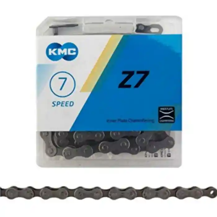 "Marca: KMC Velocidades: 7 Velocidades Material: Acero Eslabones: 116 L Peso: 350gr. Cadena Compatibles con: 6 V / 7 Velocidades Color: Gray/Brown Compatible con: Sistema de marchas SHIMANO, Campagnolo, Sram, y todas las líneas de 7 velocidades.