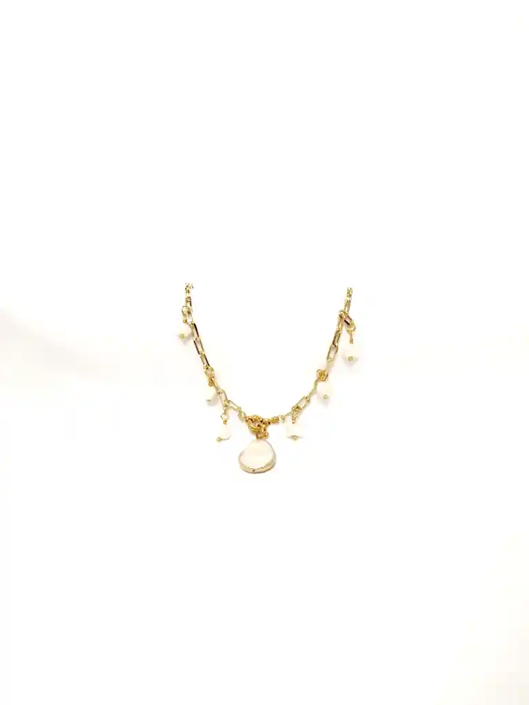 Cadena rodinada con perlas naturales y dije central con perla engastada