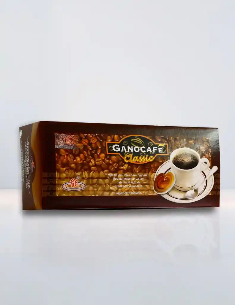 Exclusivo café instantáneo, reducido en cafeína y con el sabor robusto del clásico café negro, enriquecido con el extracto de Ganoderma Lúcidum, una combinación rica en antioxidantes. Diabetes: estimula la actividad de la insulina, promueve la síntesis de la glucosa, disminuye las complicaciones vasculares en personas diabéticas, mejora la respuesta autoinmune en caso de la Diabetes Mellitus Tipo I. Corazón saludable: previene infartos, arritmias, hipertensión, hipotensión, etc. Desórdenes metabólicos: sobrepeso, personas con bajo peso, desórdenes del apetito, irregularidad en el sueño, gastritis, úlceras estomacales y duodenales. Defensas bajas: debilidad, deseo excesivo de dormir, tendencia a enfermarse con frecuencia, etc. Migraña. No rompe ayuno. Inflamación en general: disminuye la respuesta inflamatoria, debido a su acción inhibidora de las prostaglandinas, que son las sustancias que causan inflamación. Intoxicación: acné, manchas en la piel, envejecimiento prematuro, envenenamiento. Irregularidades en funcionamiento del hígado: hepatitis, cirrosis, bilirrubina alta, manchas en las uñas. Riñones: Infecciones en la orina, gota, ácido úrico, reumatismo, artritis. Intestinos: estreñimiento, sangrado, divertículos, colitis, etc. Arterias, venas y vasos sanguíneos: venas obstruidas, mala circulación, calambres en las extremidades, várices, hemorroides, adormecimiento de manos y piernas, etc. Retención de líquidos: funciona como diurético natural. Dolor: es un analgésico natural que contribuye a suprimir el dolor. Potente inductor metabólico: ayuda a disminuir los lípidos en sangre (colesterol y triglicéridos). Registro INVIMA N° SD2013-0002865 PRESENTACIÓN 30 sachets