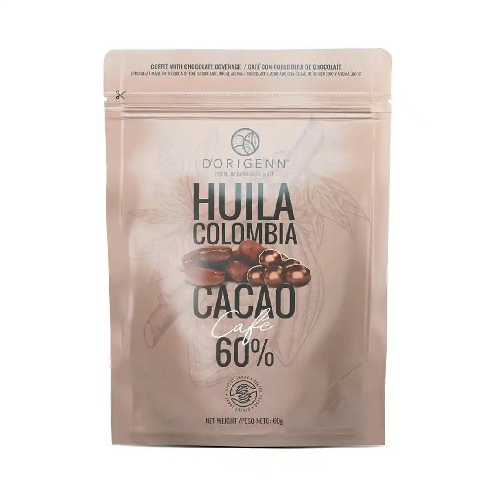 Café Cubierto con chocolate de origen 60% Cacao Premium Dark Chocolate Mantener en un lugar fresco y seco a una temperatura inferior a 23° grados centígrados, evite la exposición a la luz directa.