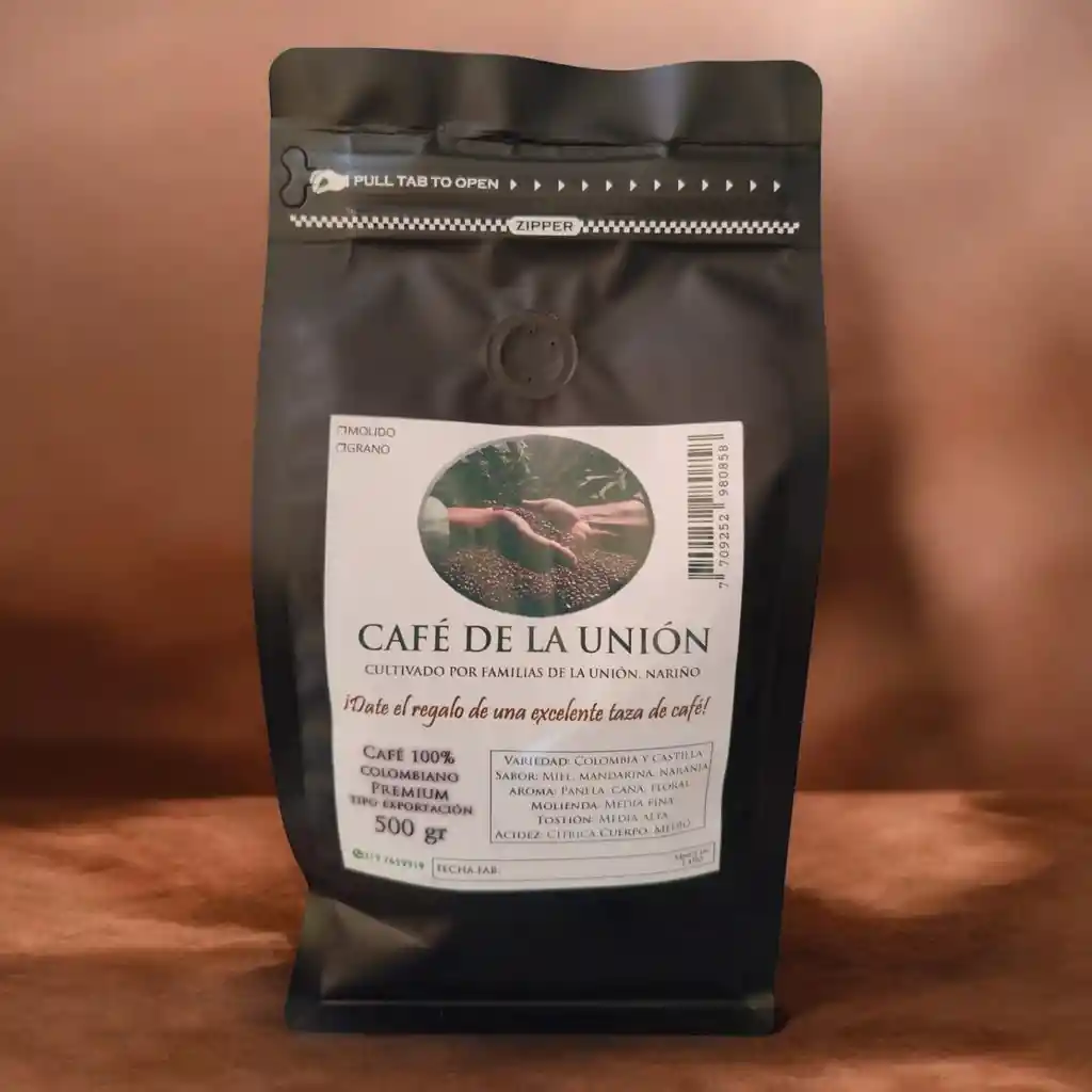 Café de variedad Colombia y castilla, sabor: miel mandarina, naranja, Aroma: Panela, caña, floral, Tostion: Media-alta, Acidez: cítrica, Cuerpo Medio. Region: la Union Nariño Contiene: 500 gramos Cultivado por familias de la Unión Nariño