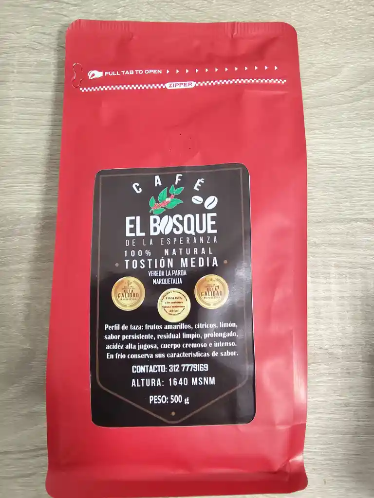 Café El Bosque 500 gramos en grano. Café totalmente natural de alta calidad. Origen: Marquetalia, Caldas.