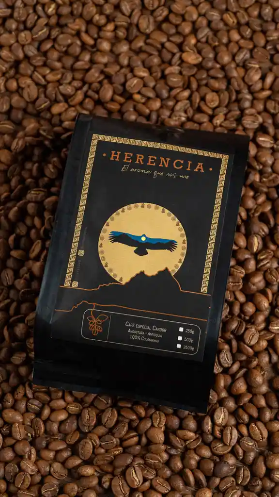 Paquete de 250g de café especial, en grano. Cultivado a una altura de 1700 msnm, en Angostura, Antioquia.
