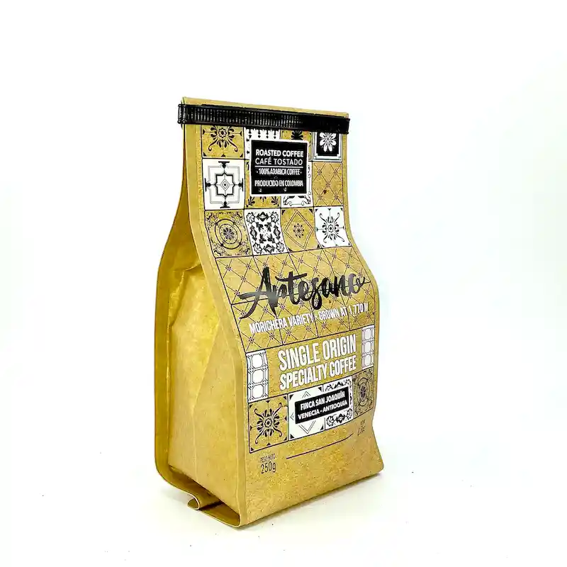 Variedad: Morichera Origen: Venecia Antioquia Altura: 1. 770 M Puntaje de Taza: 87 Tueste: Medio la Edición Artesano Está Inspirada en Los Protagonistas de Nuestra Cultura en Aquellos Que Transmiten Las Tradiciones y Llevan en Alto Con su Oficio el Nombre de Auténticos Colombianos. Disponible en 250 g (88 Oz) y 125 g (44 Oz). El Tueste Medio Se Utiliza Para Preparación Sobre Todo Con Métodos de Filtrado Como la V60 Chemex o Prensa Francesa. en Este Tueste la Superficie Del Grano Se Mantiene Seca es Decir Que No Se Lleva A un Nivel de Caramelización Por Tratarse de un Tueste Rápido. Se Caracteriza Por Tener Una Acidez Alta. Bolsa