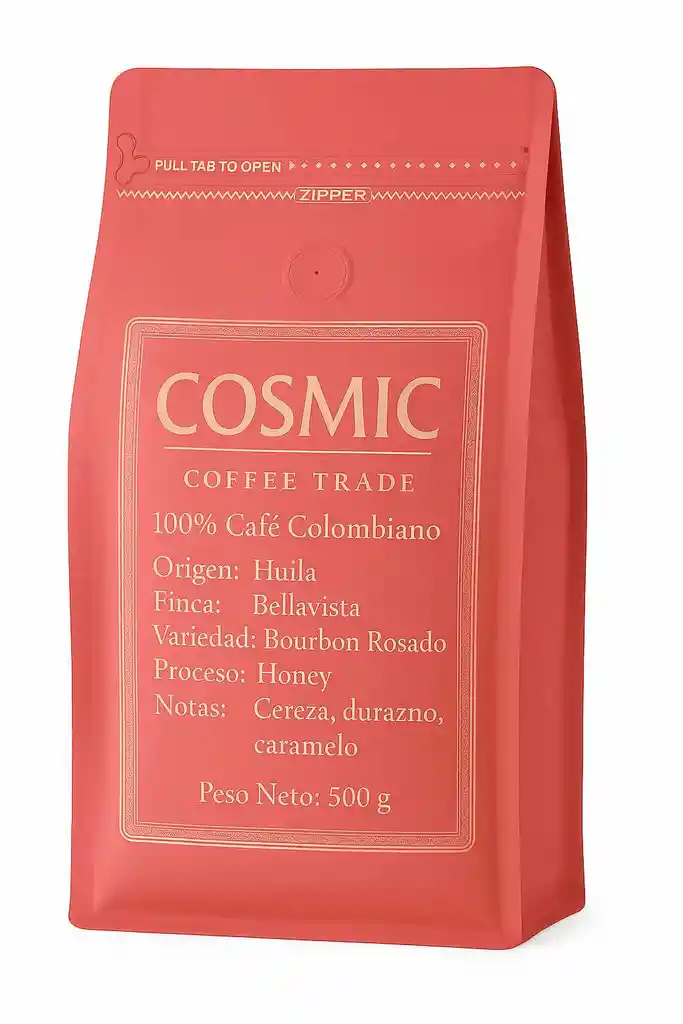 Café Especial / 100% Colombiano Origen: Pitalito - Huila Variedad: Bourbon Rosado Proceso: Honey Notas: Cereza, durazno, caramelo. Peso Neto: 500g