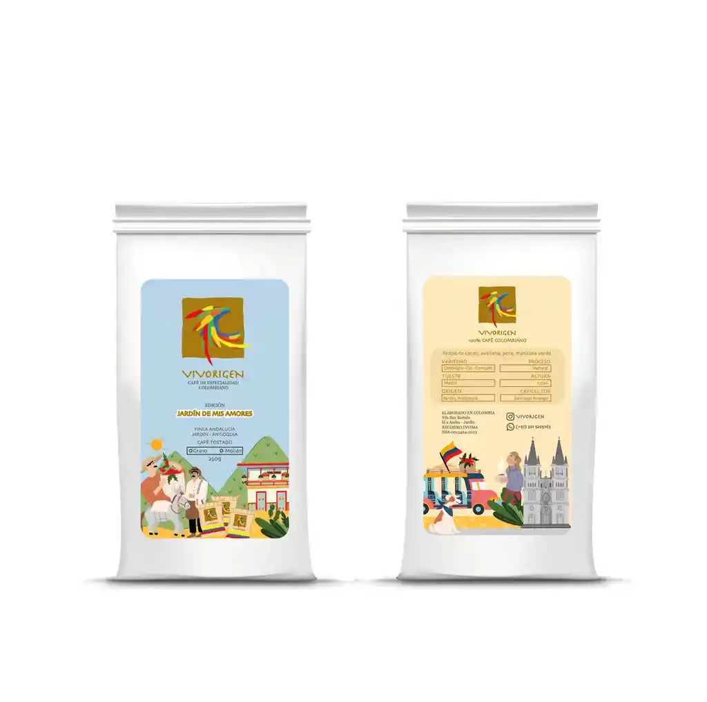 Nuestro cafe homenaje al hermoso municipio de Jardin. Ilustramos la esencia de este maravilloso pueblo con su iglesia y edificios emblemáticos y recreamos su sabor en esta edición de Vivorigen. Podrás disfrutar de notas a manzana verde, piña y vino en este fantastico blend de nuestra finca ubicada en Jardin.
