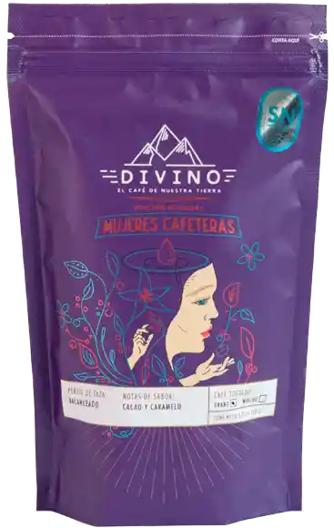 Café Divino Mujeres Cafeteras es una edición especial de café de origen colombiano; que rinde homenaje y apoya a las mujeres productoras de la Sierra Nevada de Santa Marta. Origen y Altura: Se cultiva en la zona de Palmor (Sierra Nevada de Santa Marta) a unos 1,500 metros sobre el nivel del mar. Perfil de Sabor: Se caracteriza por tener notas predominantes de cacao y caramelo. Propósito Social: El proyecto busca visibilizar el trabajo de comunidades de mujeres empoderadas, ayudando a preservar sus tradiciones ancestrales y mejorando el bienestar de sus familias.
