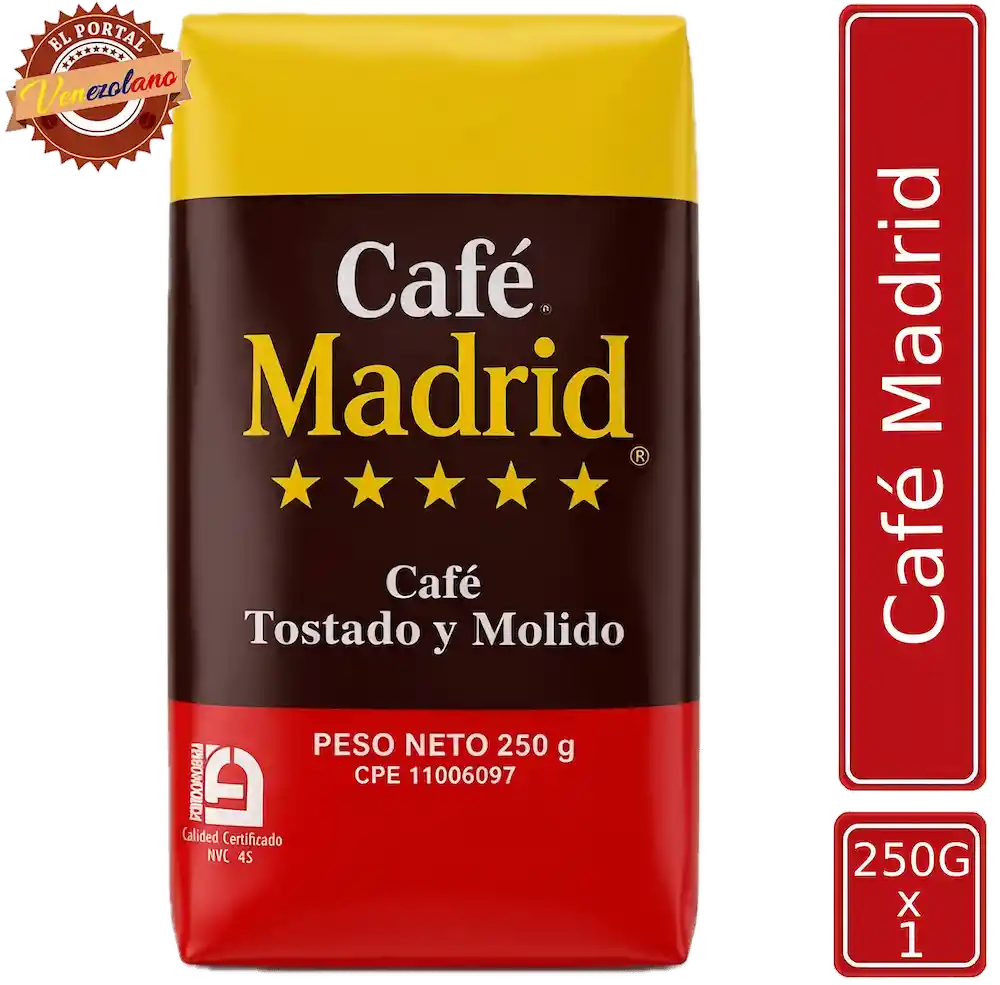 ☕ Café Madrid Venezuela El sabor auténtico del café venezolano de siempre. Café Madrid es una mezcla cuidadosamente seleccionada de los mejores granos venezolanos, tostados y molidos para ofrecerte una taza intensa, aromática y con cuerpo. Perfecto para preparar tu espresso, marrón o guayoyo del día. ¡Calidad con sabor, directo a tu mesa!