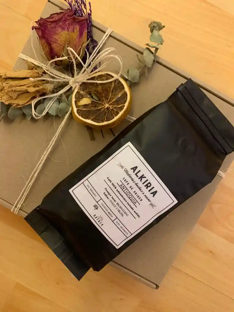 Café de origen 100% Colombiano tipo exportación, tostión media, cuerpo taza balanceado y sabor dulce y frutal.