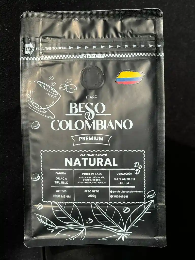 Café cultivado por la Familia Guaca Trujillo en Acevedo - Huila. Nivel de tostión: Media. Este café te brindará un perfil de taza alicorado, chocolate, cuerpo jugoso, acidez media-baja, arándanos y con notas de sabor a vino blanco. Café seleccionado grano a grano y por máquina biométrica. Fermentación: 60 horas / Secado: 2 meses. 1550 MSNM.