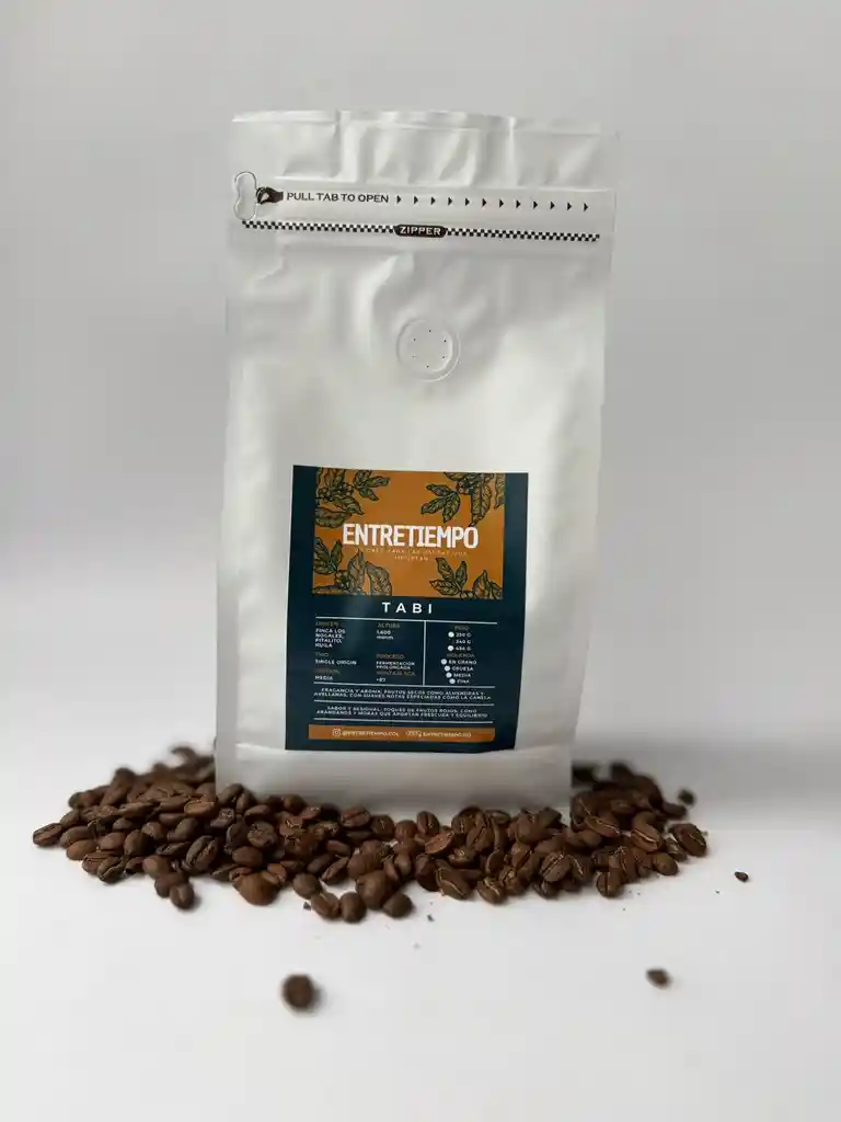 🌿 Tabi – Fermentación Prolongada | Pitalito, Huila Origen: Finca Los Nogales, Pitalito – Huila Altura: 1.600 msnm Variedad: Tabi Proceso: Lavado con fermentación prolongada Tostión: Media Puntaje SCA: +87 Este Tabi de Pitalito es una expresión refinada del café colombiano: limpio, aromático y profundamente equilibrado. Su fermentación prolongada realza un perfil sofisticado que combina dulzor, frescura y una complejidad elegante. En fragancia y aroma encontrarás almendras, avellanas y un toque sutil de canela, que anticipan una taza cálida y envolvente. En boca destaca una acidez brillante y estructurada, con notas de frutos rojos como arándanos y moras, que aportan frescura, jugosidad y un balance impecable. Su final es limpio, redondo y muy agradable. ☕ Ideal para quienes disfrutan perfiles complejos y aromáticos, especialmente en métodos filtrados como V60, Chemex o Kalita, donde su claridad y dulzor se expresan al máximo.