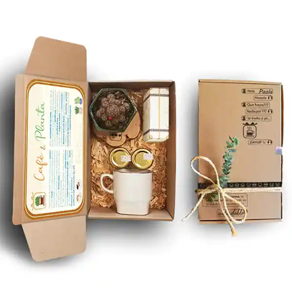 Comparte un delicioso café y genera tranquilidad a esa persona especial. el regalo contiene: Hermosa planta Suculenta o Cactus (puede variar según existencias) café instantáneo. leche en polvo. chocolates. 1 pocillo. 1 portavasos de madera y 1 mezclador de madera.