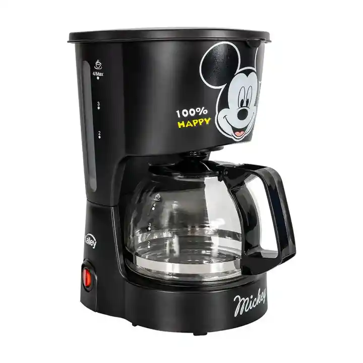 "Capacidad: 4 tazas (600?ml) Potencia: 600?W Filtro permanente lavable Jarra de vidrio Función mantener caliente Sistema antigoteo Diseño temático de Mickey Mouse"