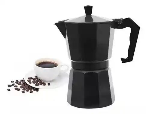 Capacidad: 6 tazas de ESPRESSO (295 ml) -Fabricada en aluminio -Asa y pomo de baquelita de toque frío -Funcionamiento tipo cafetera italiana -Fácil limpieza -Apta para cocinas de gas, eléctricas y vitrocerámicas - Medidas: Largo 15 cm y Ancho 9 cm.
