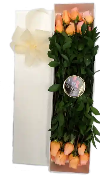Caja Contiene: Rosas Tonos Salmón Seleccionadas Empacadas en Una Fina Caja de Cartón Duro y Reciclable 12 Unidades + Simpkins Dulces Importados en Caja Metálica 1 Und + Follaje 1 Und + Alimento Para Flores 1 Und + Moño Decorativo 1 Und + Tarjeta 1 Und. Personaliza el Mensaje de la Tarjeta en Los Comentarios.