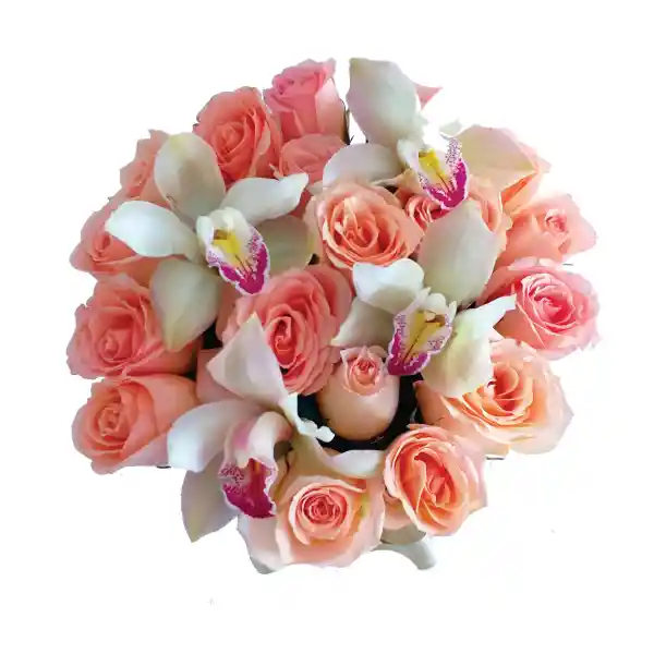 Sombrerera Rosas Rosada; 6 Cymbidium;Tarjeta De/Para y Moño