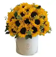 Canasta mediana de 30 girasoles Nota: La flor puede ser sustituida dependiendo la disponibilidad de color y del producto “Mensaje Personalizado” máximo de 30 caracteres (Dejar el mensaje en el chat, los comentarios no se previsualizan para la tienda por lo que si se dejan allí no podrá ser incluido).