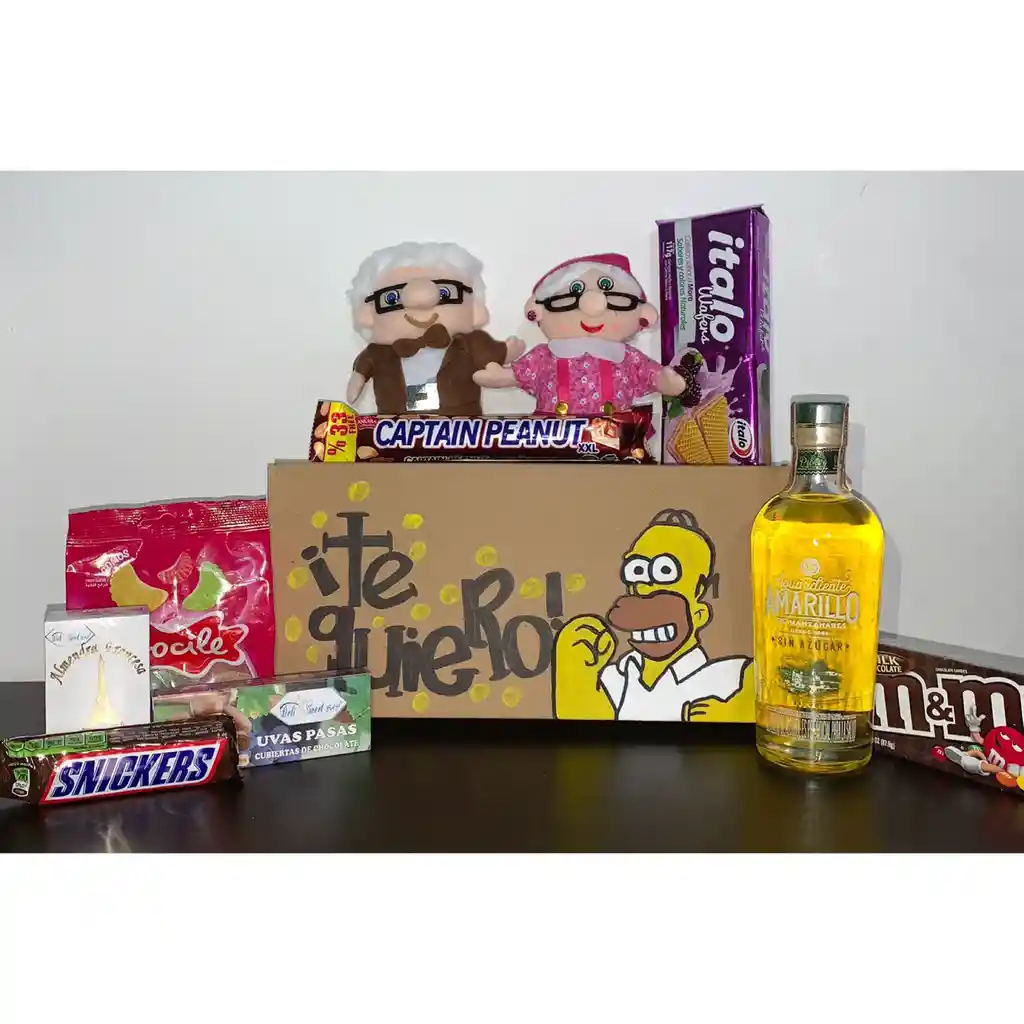 Para comprar este producto es necesario pedirlo con 2 dias de antelacion, para la entrega de tu detalle. Caja decorada, contiene licor, un par de peluches y variedad de dulces.