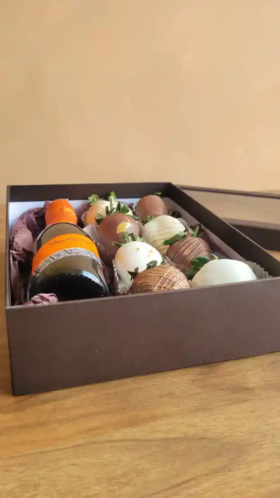 Intensa, oscura y suave. Hay decisiones que se sienten más. 🌾Incluye: -Caja de lujo cuadrada -6 fresas cubiertas de chocolate blanco -6 fresas cubiertas de chocolate oscuro -Tarjeta para mensaje