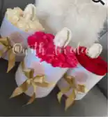 Cajita redonda Virgen Guadalupe de 12cms y de 12 a 15 rosas, color a tu elección.