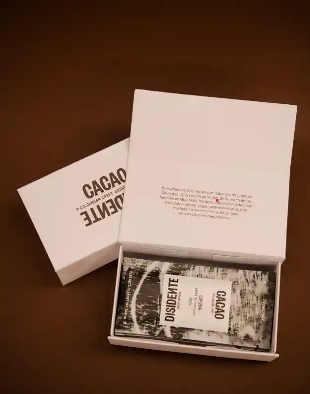 Caja regalo con 6 barras línea orígenes (macarena 75%, tierra negra 75%, Don miqueas) y 3 barras ensamblajes (Arcadia 100%, Nébula 92%, Lupuna 86%)