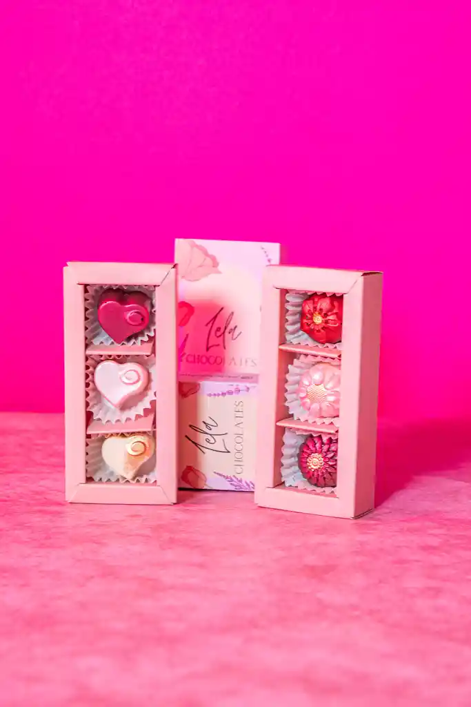 Delicada Caja de chocolates rellenos elaborados con distintos tipos de chocolates selectos de origen colombiano, rellenos de distintos sabores frutales que destacan nuestra tradición colombiana como la mora, fresa, arequipe y maracuyá. Esta caja incluye 3 bombones de sabores surtidos de 3cm de diámetro en hermosa caja de 11*5cms