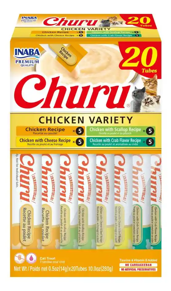 Churu Variedad Pollo es el snack perfecto para consentir a tu mascota. Con esta caja de 20 unidades, tendrás suficiente para disfrutar de momentos especiales juntos. La marca Churu es reconocida por su calidad y sabor irresistible, por lo que tu mascota no podrá resistirse a este delicioso premio. Además, la línea CHURU ofrece una variedad de sabores que harán que tu mascota siempre esté emocionada por probar algo nuevo. ¡No esperes más y sorprende a tu peludo amigo con Churu Variedad Pollo!