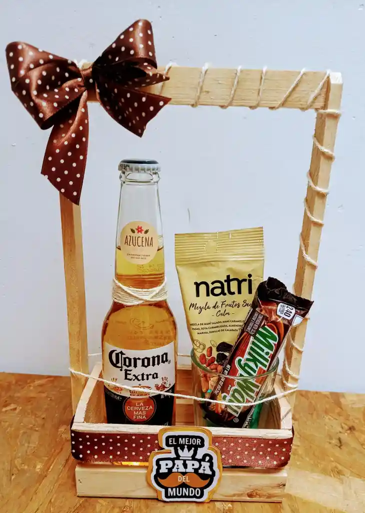 Caja con cerveza, regalo especial para cualquier ocasión, sorprende con un detalle único, contiene: Cerveza corona, vaso de cristal, frutos secos , chocolate americano y caja decorada según la ocasión. Ideal para día del padre, día del abogado, cumpleaños, amor, aniversario, bienvenida, amigos, novio.